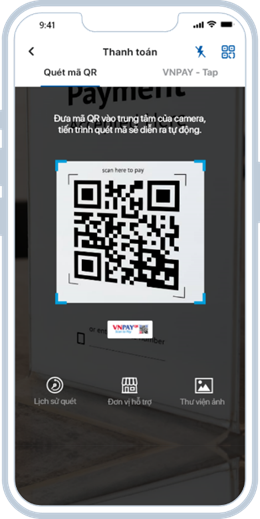 - Bước 3: Chọn tính năng quét mã QR: Trong ứng dụng ngân hàng/ví điện tử, chọn mục “Quét mã QR” hoặc tương tự. |